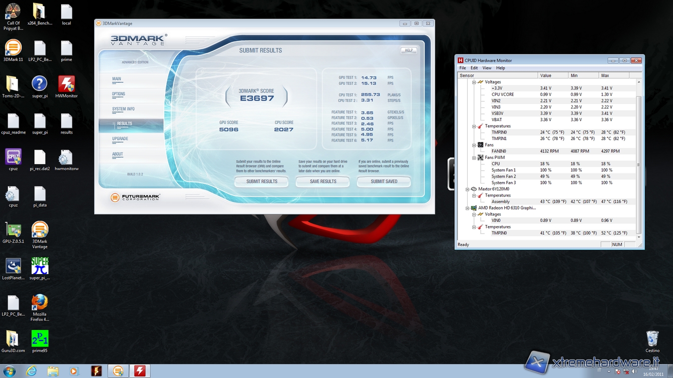 Abbiamo deciso di stressare in contemporanea la cpu e la gpu integrata, utilizzando il software 3DMark Vantage con la ventola del dissipatore settata prima al 100%, poi al 75% e infine al 50%. Il test è stato effettuato sopra un banchetto della HighSpeedPC, recensito qui.